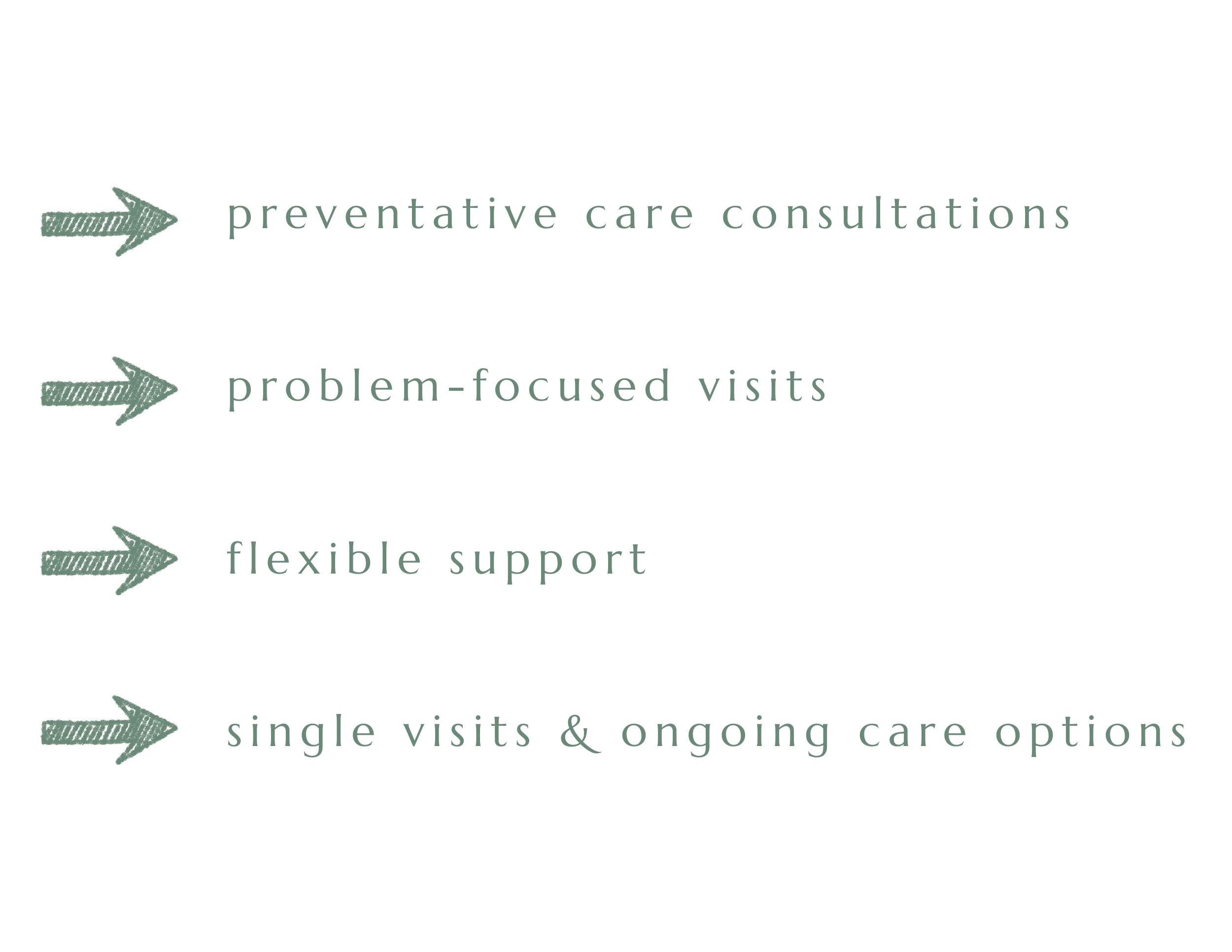 preventative care 〰️ problem-focused visits 〰️ single consultations 〰️ levels of support 〰️